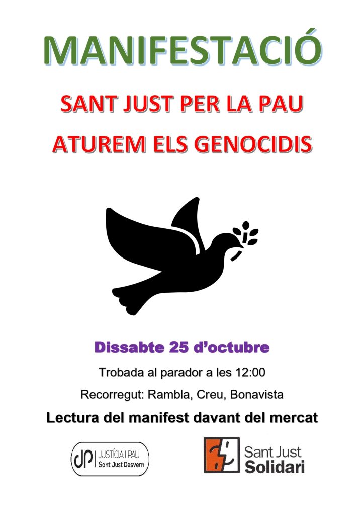 Sant Just Solidari conjuntament amb Justícia i Pau vam organitzar una manifestació sota el lema Sant Just per la Pau, aturem els genocidis.