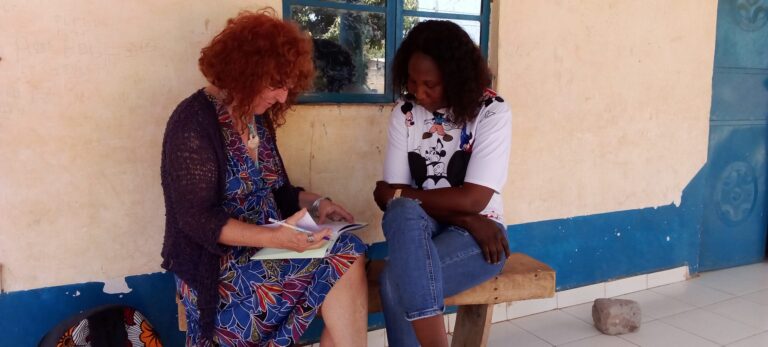El passat mes de març, Glòria Martínez va viatjar a Gàmbia per fer un seguiment dels projectes que es duen a terme. A la foto la veiem amb Naffie Jatta, directora del centre de salut, preparant el taller sobre salut sexual i reproductiva que impartiran els 15 joves participants.